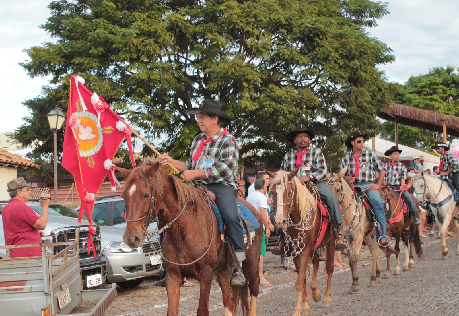 levando a bandeira do Divino com o objetivo de recolher donativos,